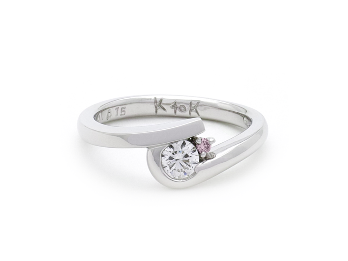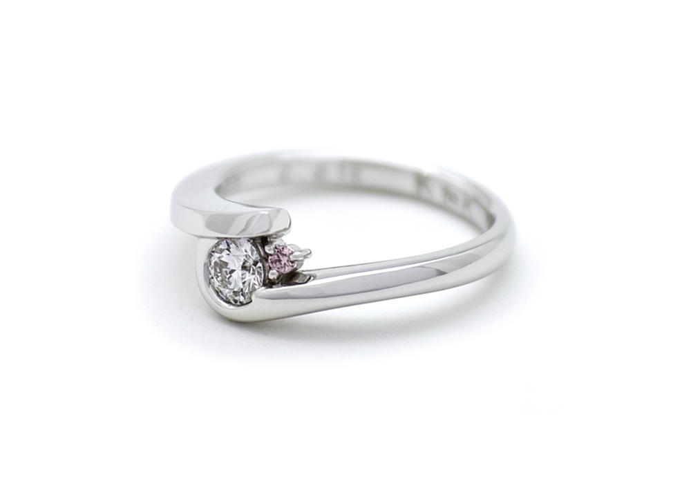 角を残したひねりにピンクダイヤを留めた手作り婚約指輪 北島様