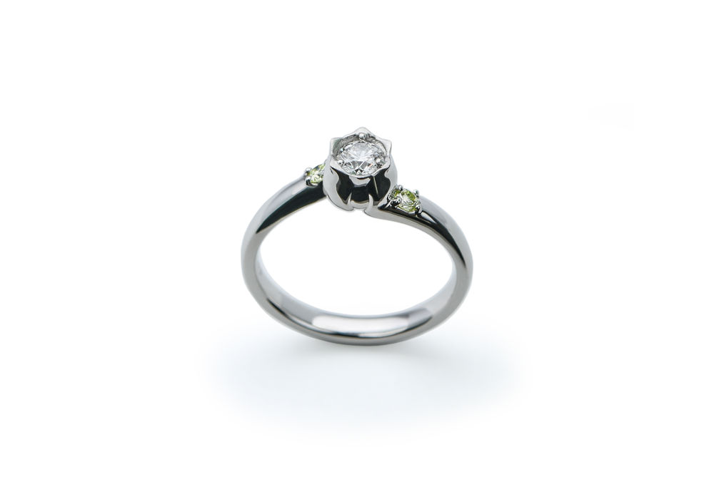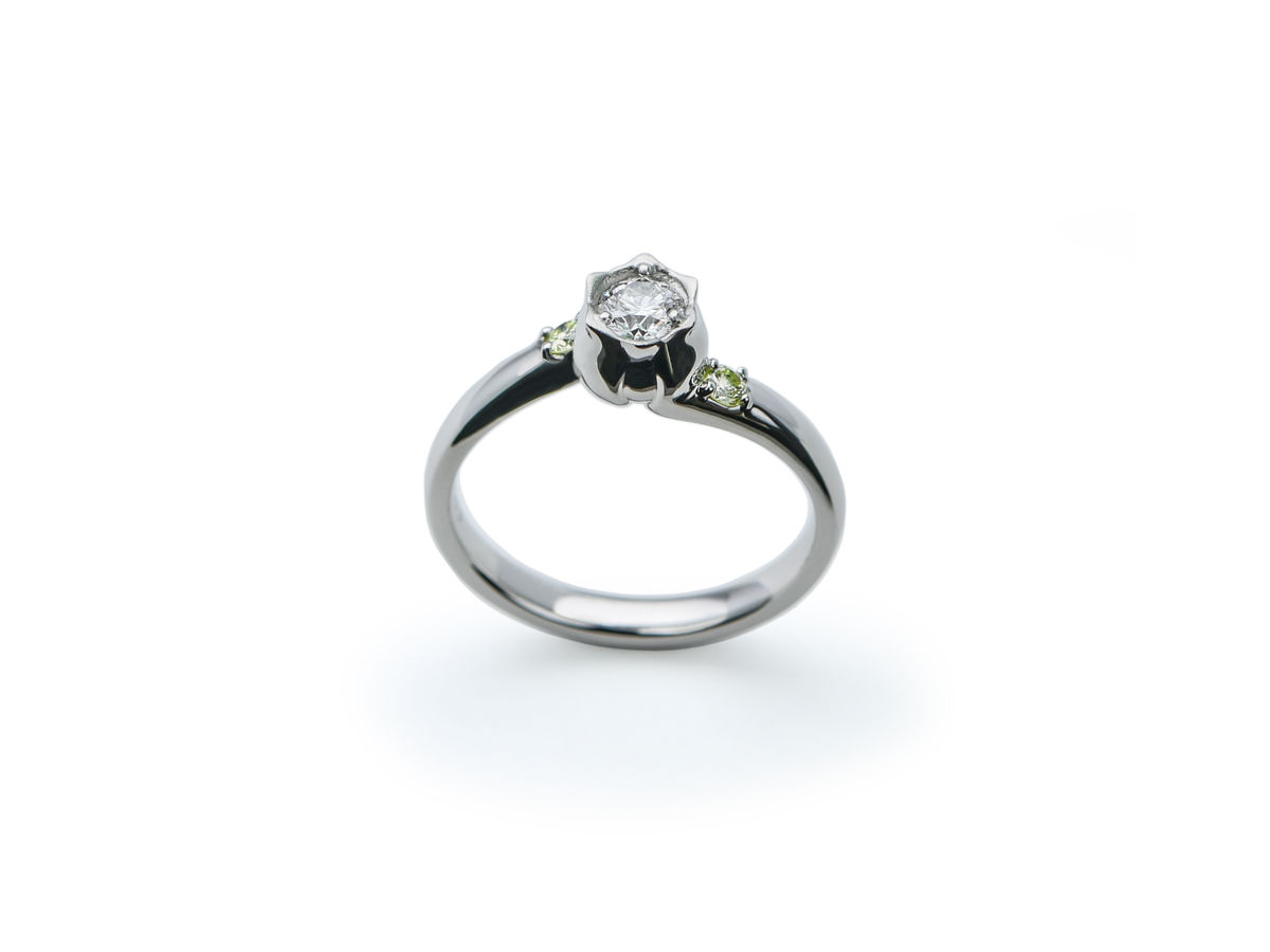 大切な親御様からのプレゼントであるダイヤモンドを用いて、おふたりだけの婚約指輪をお作りいただきました。