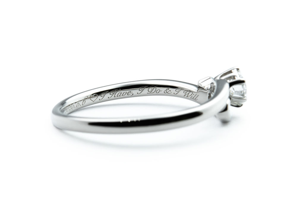 実は、石枠の側面部分におふたりのイニシャルが入っていたり、内側にはご新郎様からご新婦様への愛おしいメッセージが入っているなど、見えないところにもこだわりがたっぷりな素敵なご婚約指輪が完成しました♡