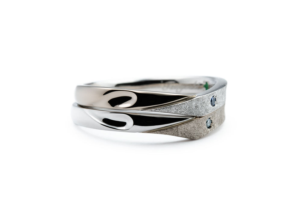 おふたりとも右側をスターダスト、左側を鏡面加工にし、スターダストの部分にご自身の誕生石を留めました。