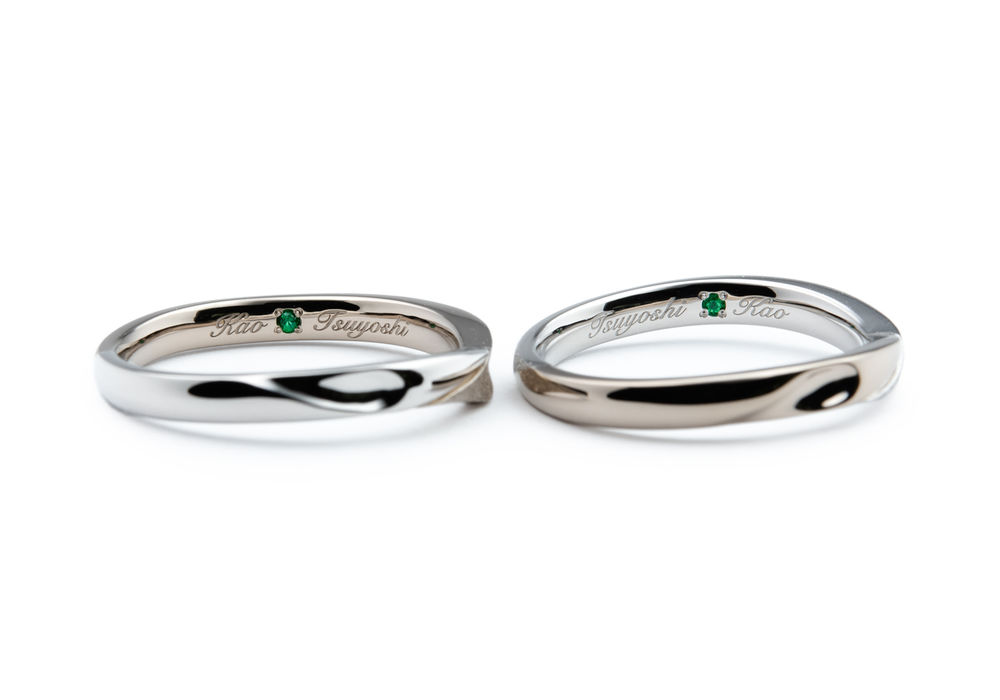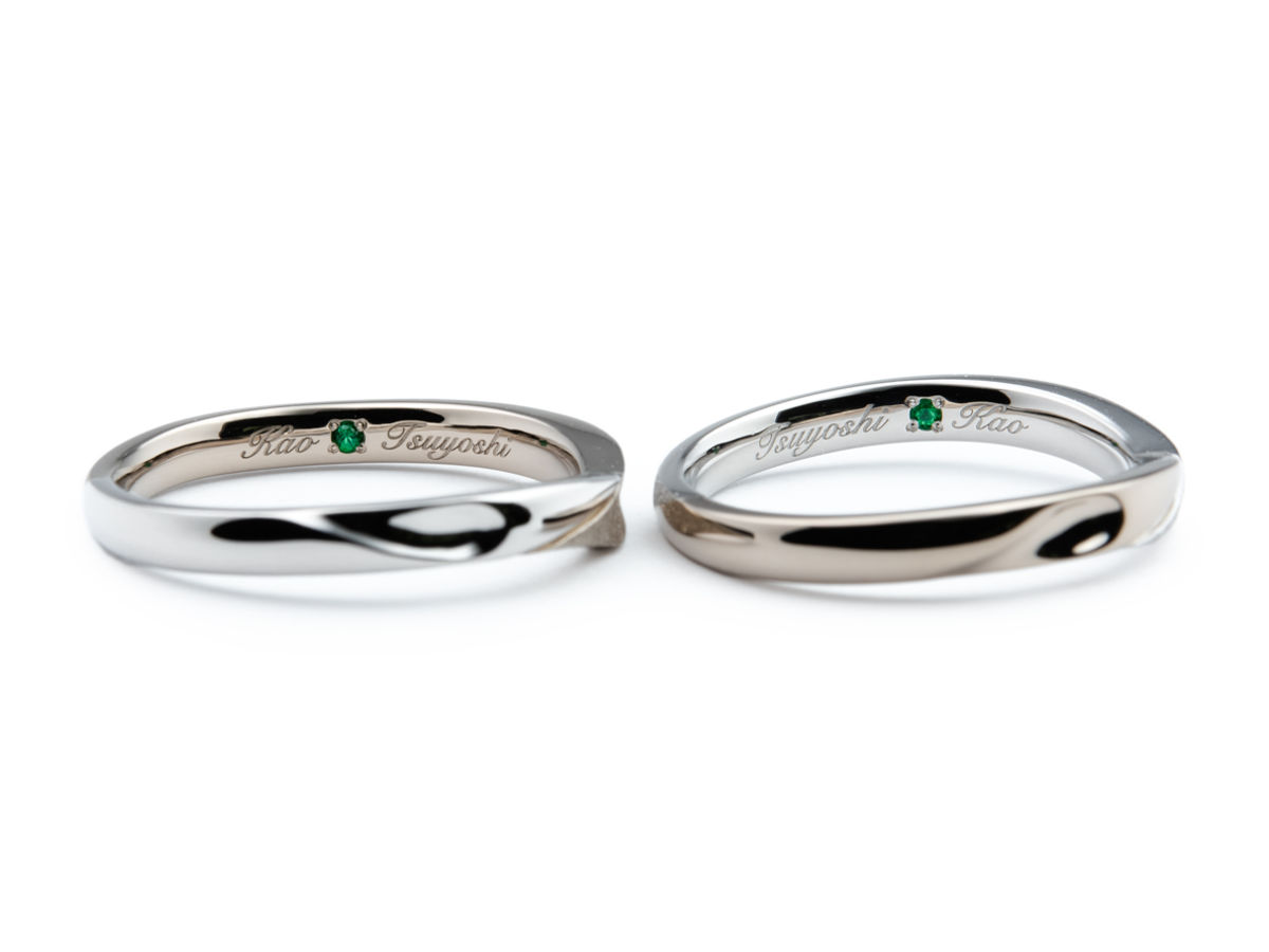 内側にはおふたりの名前とご入籍月のエメラルドを入れました