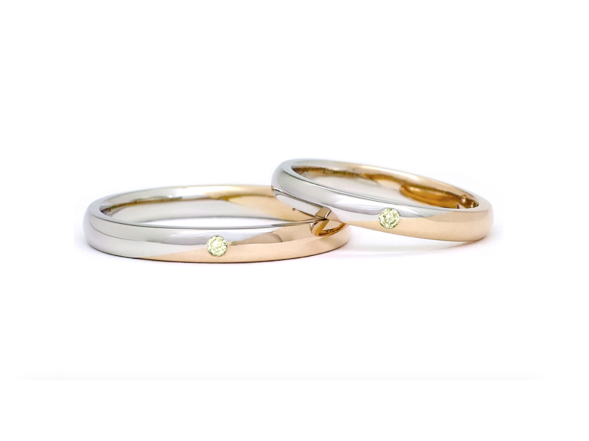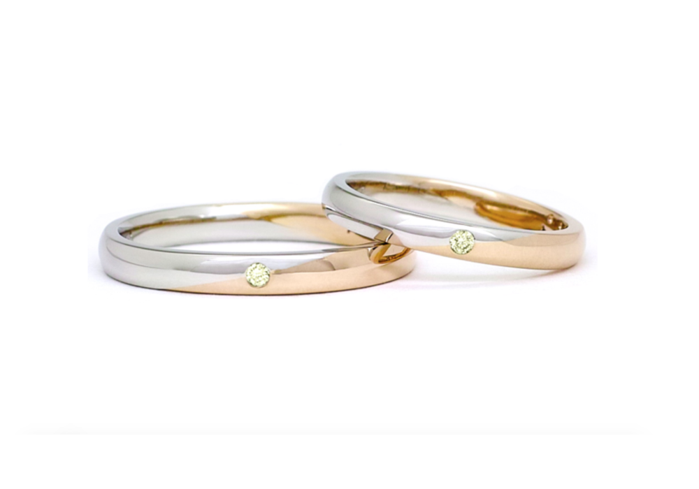 シンプルな甲丸スタイルのコンビネーションリング。