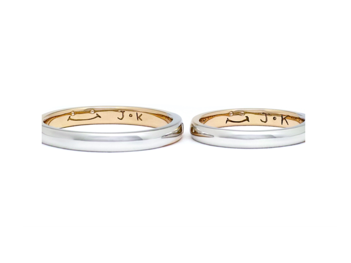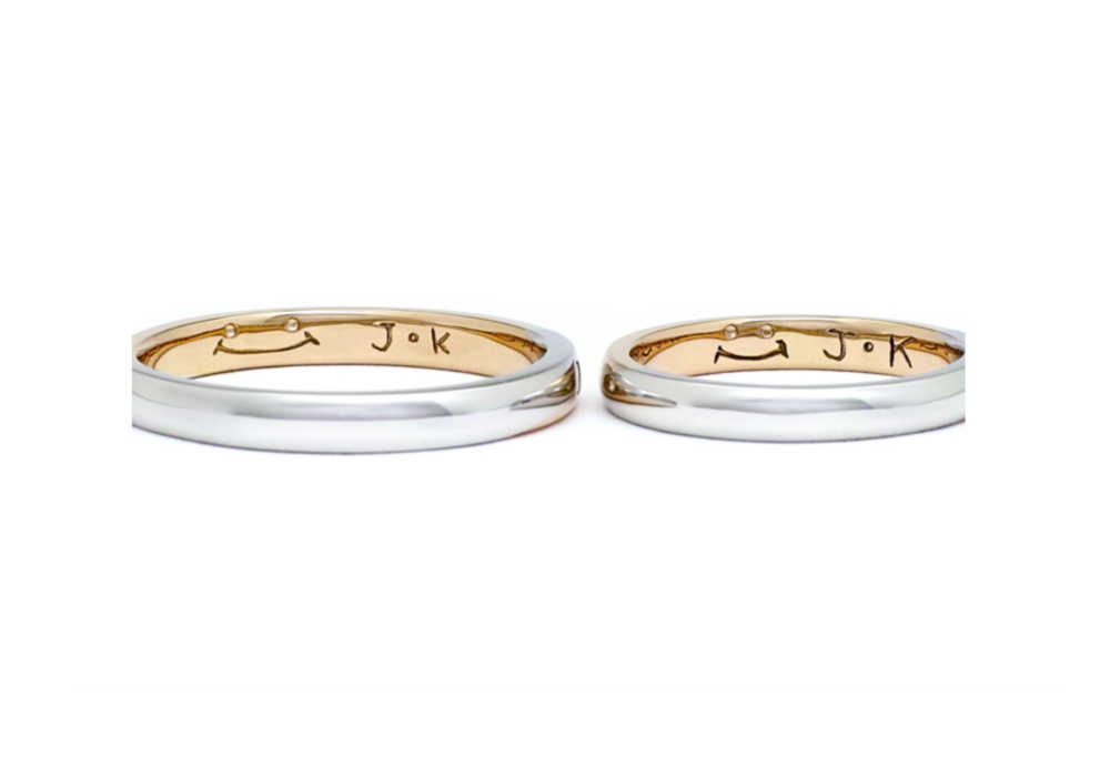 内側に彫ったスマイルとイニシャルは「いつまでも笑顔を絶やさずに…」という想いが込められています。