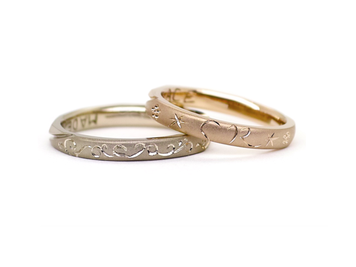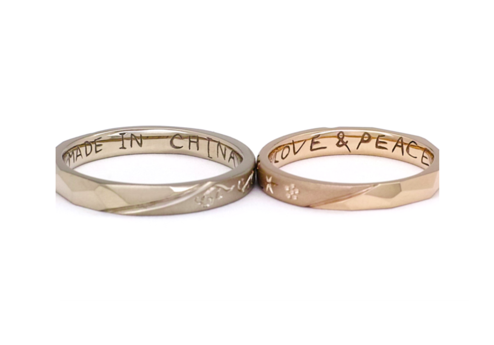 内側にはお互い内緒で描いたメッセージが彫ってあります。