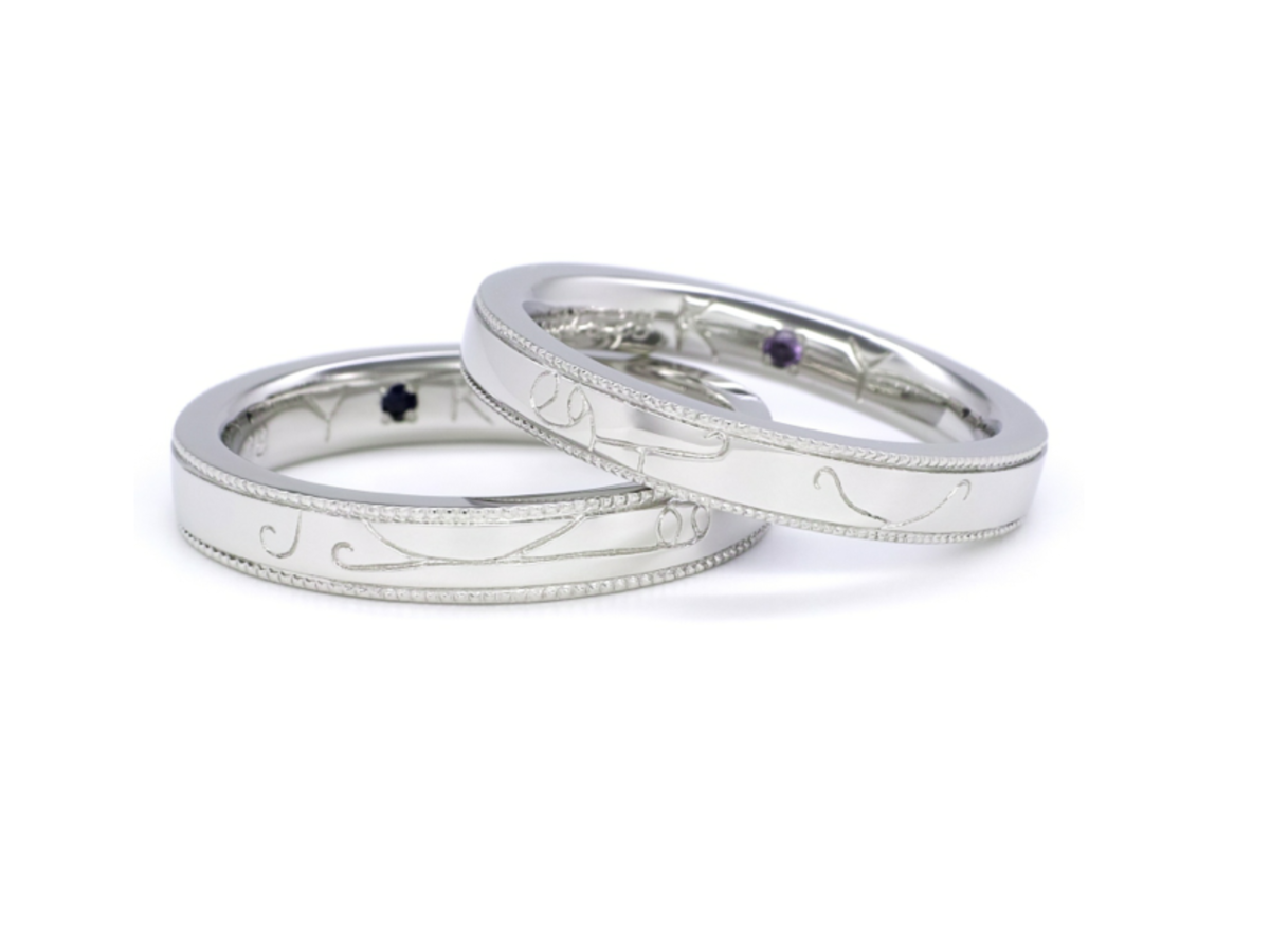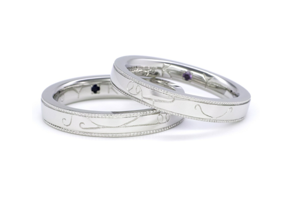 また、内側には誕生石のアメシストと、サファイアが留まっています。