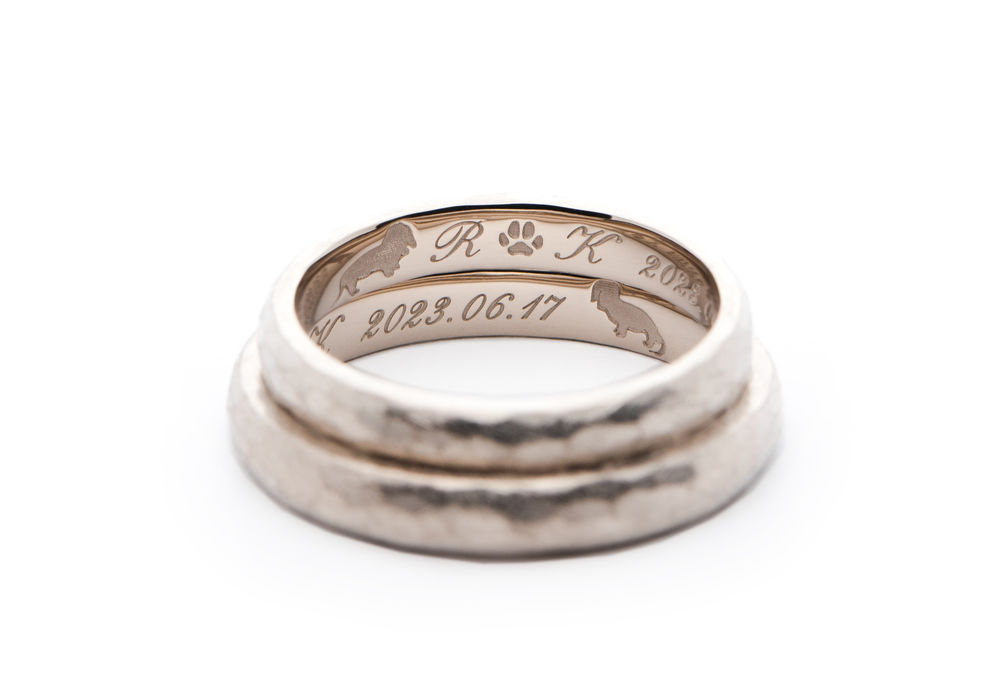 アンティーク加工のデザインに愛犬を入れた手作り結婚指輪 愛知 Ritsuki & Kasumi 2023.04.23